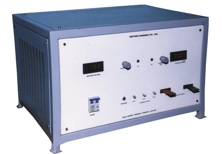 Constant current Battery charger Powerman’s Mod No.505 has been designed with latest micro processor technology control to charge the batteries at constant current rate irrespective of falling or raising of battery terminal voltage and also control the fluctuation of mains voltage. The battery charger had a provision of automatic cutoff after the terminal voltage reached a particular value. The charging current stopped. This is to ensure full charge and avoid over charging. This charging is protected against short circuit and reverse polarity etc.